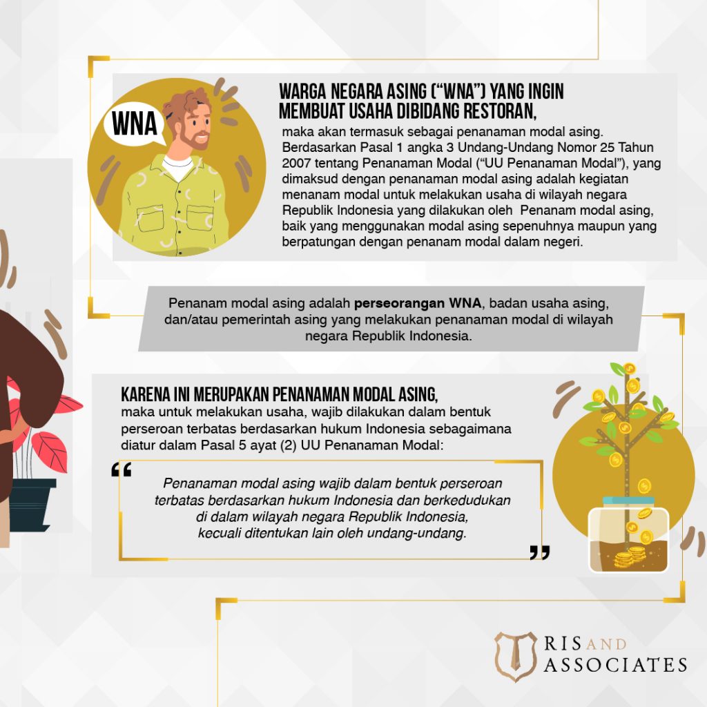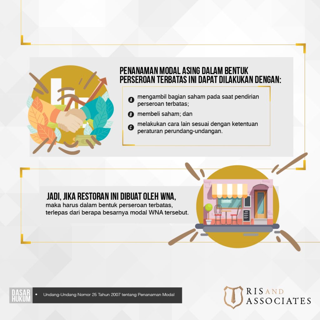 Jadi, jika restoran ini dibuat oleh WNA, maka harus dalam bentuk perseroan terbatas, terlepas dari berapa besarnya modal WNA tersebut.