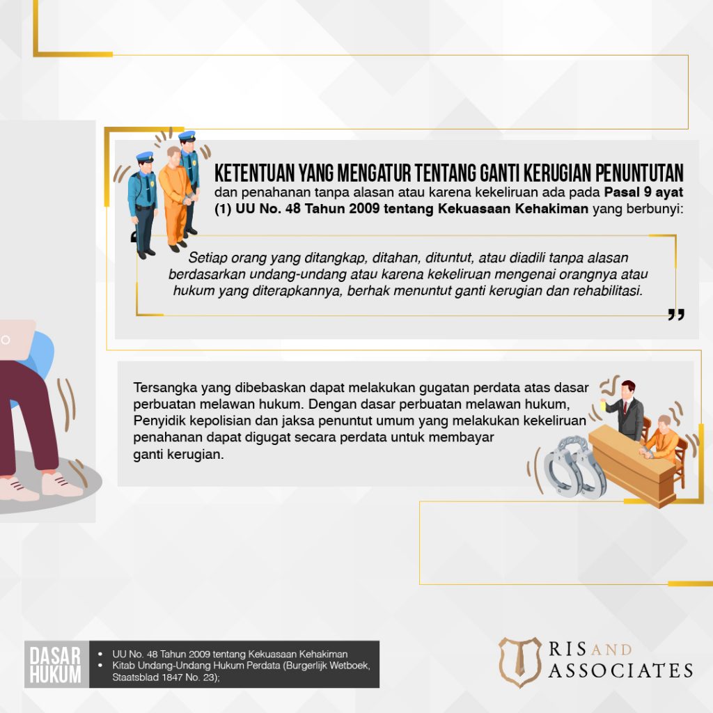 “Setiap orang yang ditangkap, ditahan, dituntut, atau diadili tanpa alasan berdasarkan undang-undang atau karena kekeliruan mengenai orangnya atau hukum yang diterapkannya, berhak menuntut ganti kerugian dan rehabilitasi.”