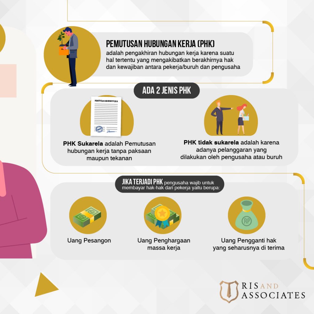 - Jika terjadi PHK pengusaha wajib untuk membayar hak-hak dari pekerja yaitu berupa: