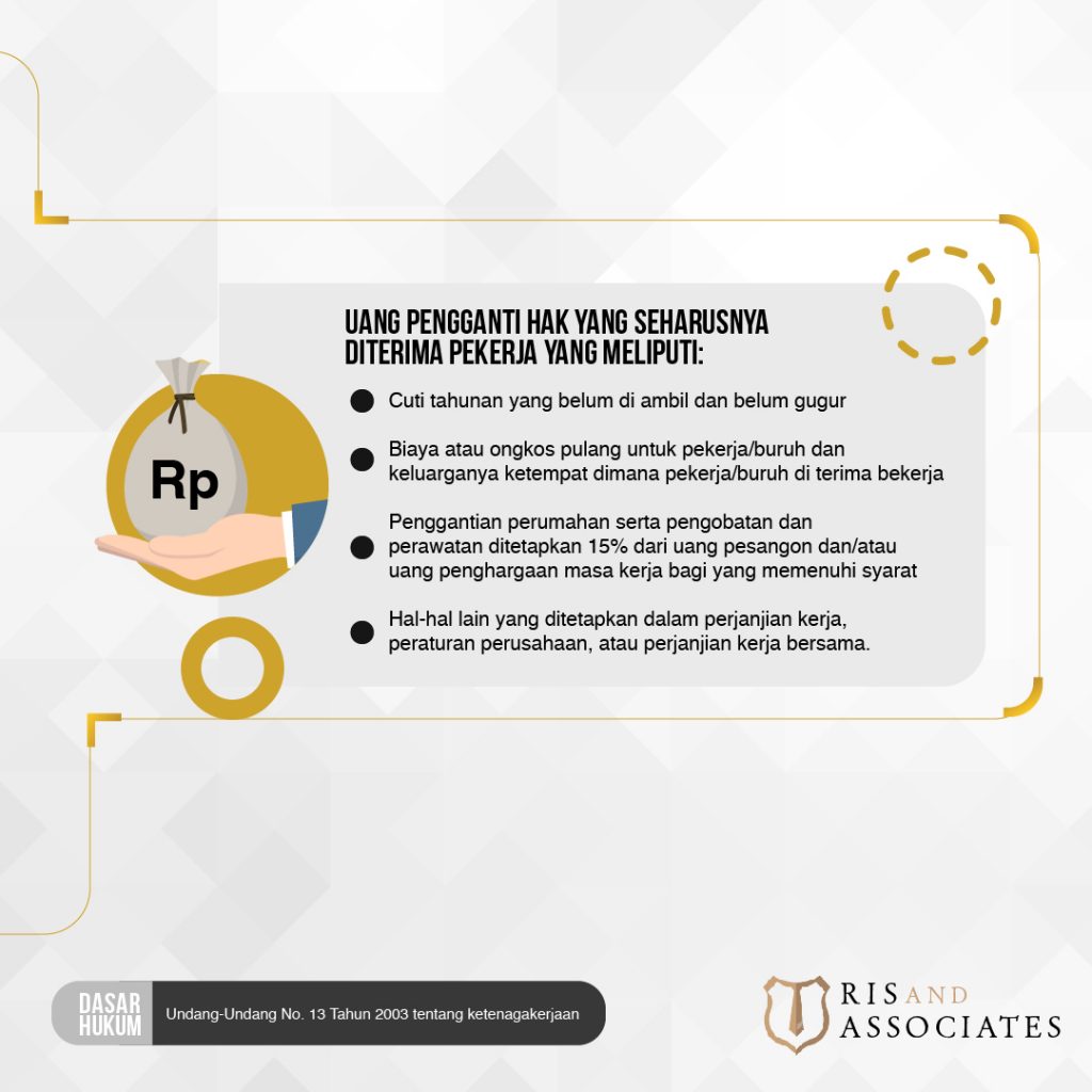 - Uang pengganti hak yang seharusnya diterima pekerja yang meliputi: