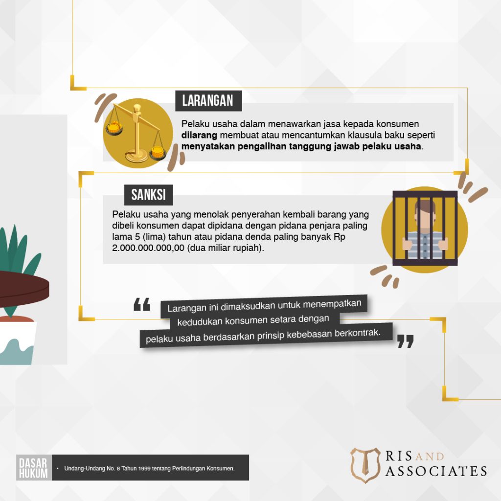 Larangan ini dimaksudkan untuk menempatkan kedudukan konsumen setara dengan pelaku usaha berdasarkan prinsip kebebasan berkontrak.