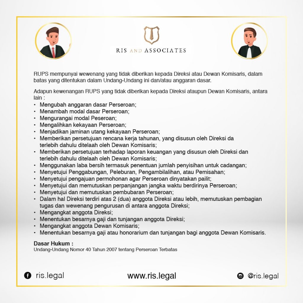 Adapun kewenangan RUPS yang tidak diberikan kepada Direksi ataupun Dewan Komisaris, antara lain :