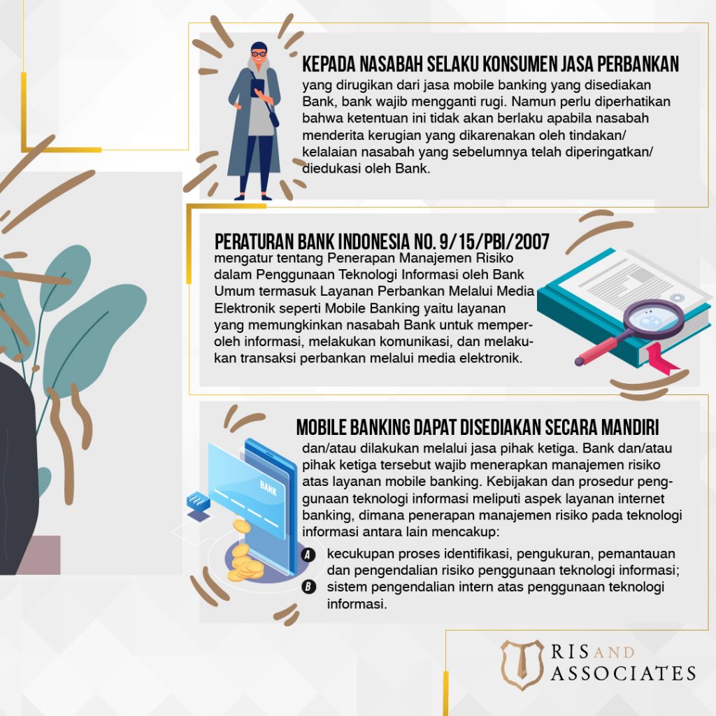 Peraturan Bank Indonesia No. 9/15/PBI/2007 mengatur tentang Penerapan Manajemen Risiko dalam Penggunaan Teknologi Informasi oleh Bank Umum termasuk Layanan Perbankan Melalui Media Elektronik seperti Mobile Banking yaitu layanan yang memungkinkan nasabah Bank untuk memperoleh informasi, melakukan komunikasi, dan melakukan transaksi perbankan melalui media elektronik.