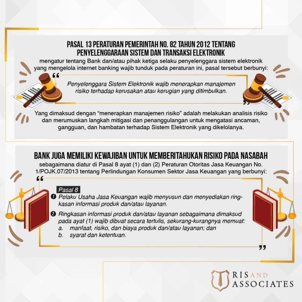 Perlu diketahui, Bank memiliki kewajiban untuk melakukan edukasi kepada nasabah agar setiap pengguna jasa layanan Bank melalui m-banking atau e-banking menyadari dan memahami risiko yang dihadapinya. Risiko yang harus diberitahukan ini termasuk risiko kejahatan internet banking yakni risiko serangan virus seperti phising dan MIB.