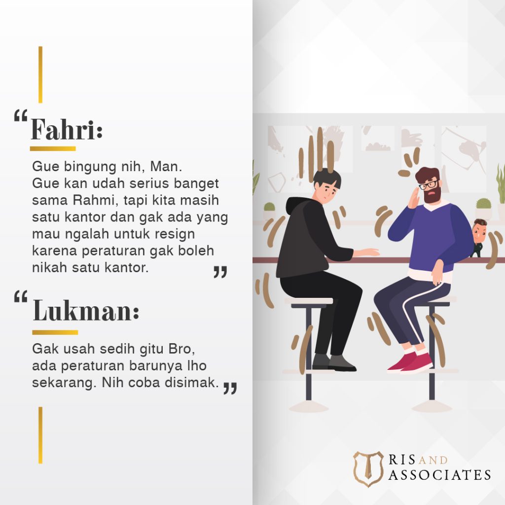 Sejak adanya Putusan Mahkamah Konstitusi Nomor 13/PUU-XV/2017, tertanggal 14 Desember 2017, teman-teman kantoran tidak perlu takut lagi untuk menikahi teman sekantor.